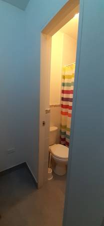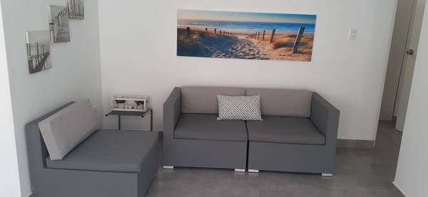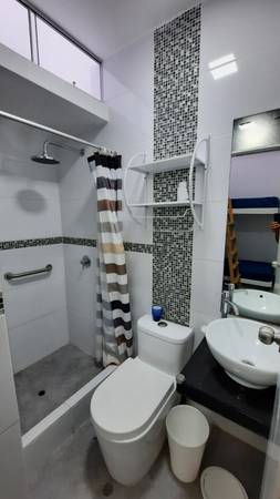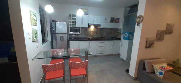 Sala-comedor, TV de 45”, cocina abierta, baño de visita, área de servicio completa con 1 camarote, 2 colchones de 1 plaza, terraza.