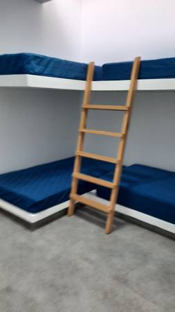 Primer nivel: Cuatro dormitorios (incluido cuarto de servicio) todos los dormitorios con baños incorporados, 2 de los dormitorios con 2 camarotes (4 personas por dormitorio) colchón de 1 ½ plaza y dormitorio matrimonial con cama Queen.