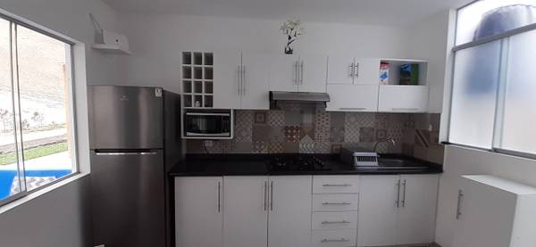 Totalmente amoblada y equipada. Una cochera más cochera de visita. La casa cuenta con: 140 M2.