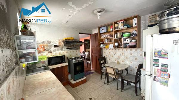 La casa dispone de sala comedor con piso parquet, cocina, cuatro dormitorios (dos con closet), dos baños completos, un estudio, patio lavandería y puerta falsa. Incluye cochera con portón manual y dos depósitos ubicados en el tercer piso.