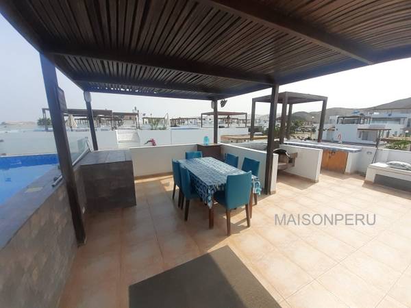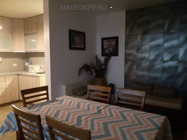 Segundo nivel: Terraza con sol y sombra, piscina y área de parrilla mesa y sillas de terraza. El condominio cuenta con vigilancia las 24 horas. Mantenimiento 500 soles agua y luz independiente. Se entrega con muebles y enseres, full equipada